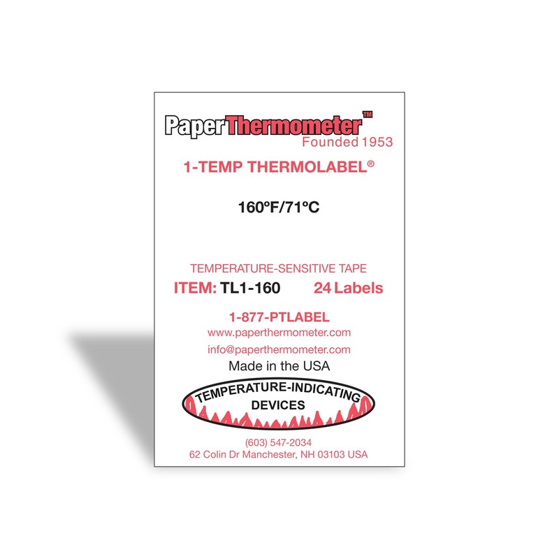 Thermolabel 1-Temp Thermolabel 160F/71C Temperature Label for Dishwashers Pack of 24 Labels