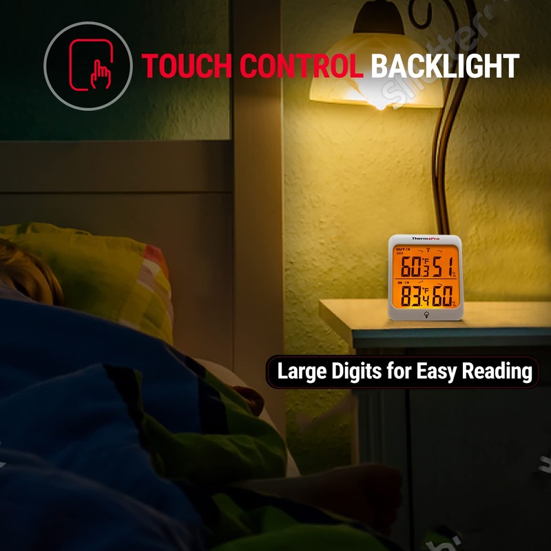 - Large Backlit LCD with Touch Button: Outdoor temperature thermometer with touchable backlight make it easily to read in dim light; Thermometer outdoor displays current temp and humidity readings including trend arrows, Max & Min records for all time/24 hrs, keeping you aware of the slightest changes in your living conditions