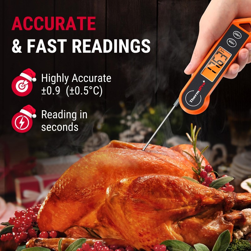 • 3-4 seconds ultra fast response time with highly accurate to 0.9, instant read meat thermometer features 4.3 inches food grade stainless steel probe, suitable for measure any type of food temp with the cooking thermometer