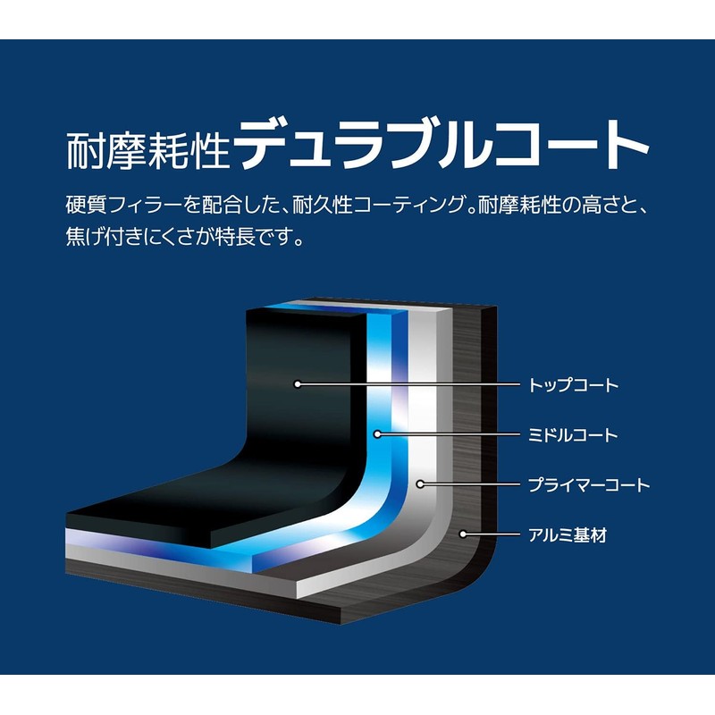 - Material: Surface Treatment: Interior: Fluorine resin coating film, Exterior: Baked coating (excluding bottom), [Materials] Body: Aluminum alloy (bottom thickness 0.09 inch (2.2 mm))