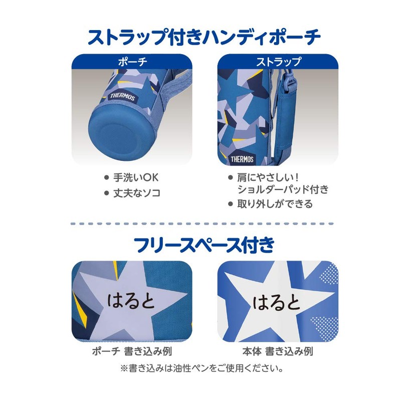 • Material: Inner bottle: Stainless steel; Body: Stainless steel (acrylic resin coating); Cup: Polypropylene; Inner stopper: Polypropylene; Lid/Cap body: Polypropylene; Lid gasket: Silicone rubber; Lid gasket: Silicone rubber; Lid gasket: Silicone rubber; Stopper: Silicone rubber; Seal gasket: Silicone rubber; Pouch: Outer fabric: Polyester, Inner fabric: Polyester, Cushion: Polyethylene foam