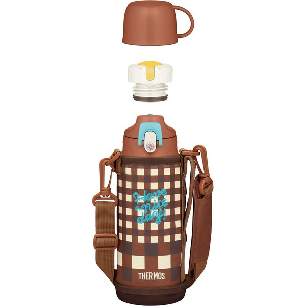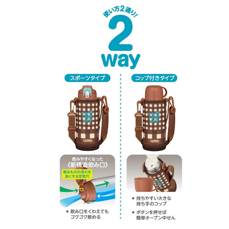 Thermos FJJ-800WF BWC Vacuum Insulated 2-Way Bottle, 0.8L/0.83L Brown Check