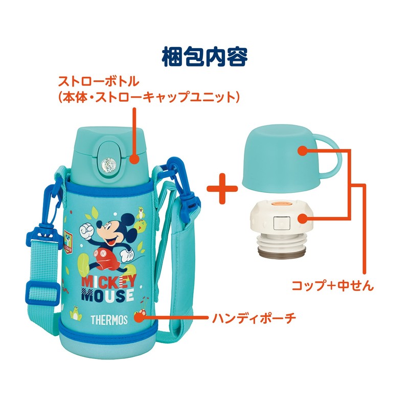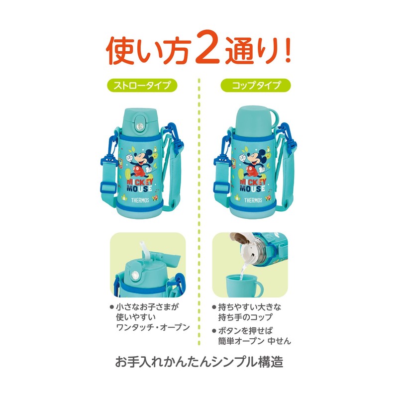 Thermos FJO-601WFDS MBL Vacuum Insulated 2-Way Bottle, 0.6L / 0.64L / Mickey Mint Blue Straw Cup for Kids