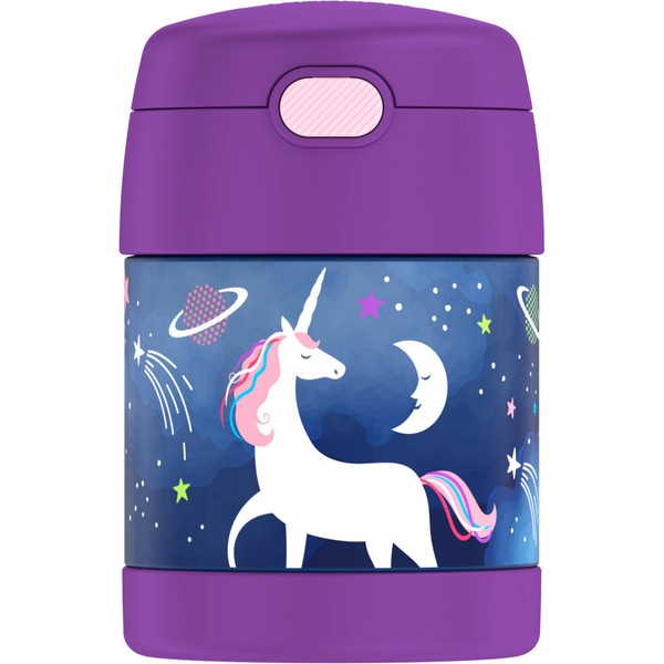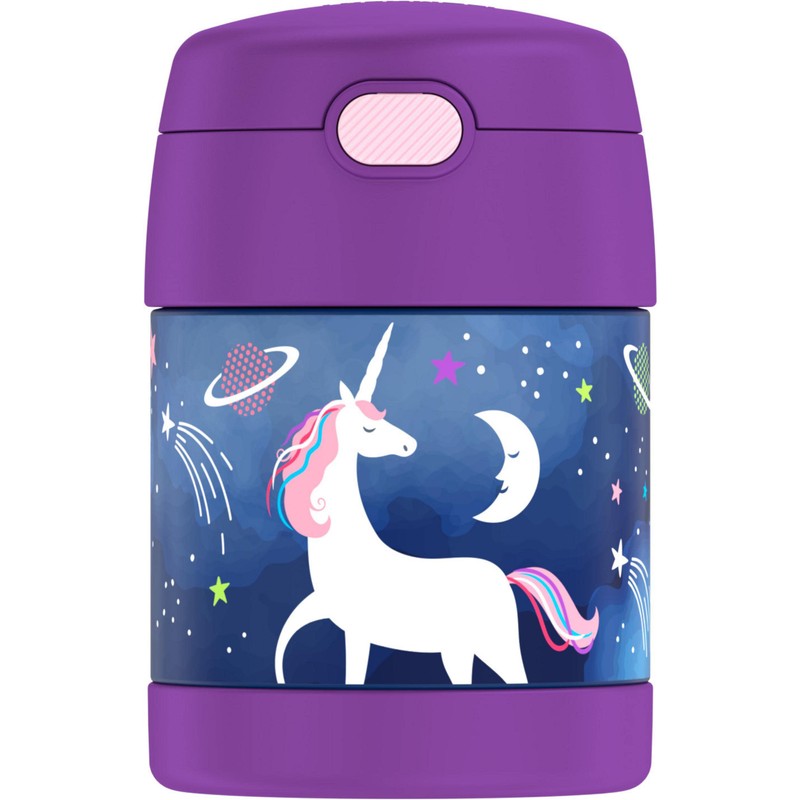 THERMOS FUNTAINER - Tarro de acero inoxidable aislado al vacío para niños con cuchara, unicornio espacial de 10 onzas