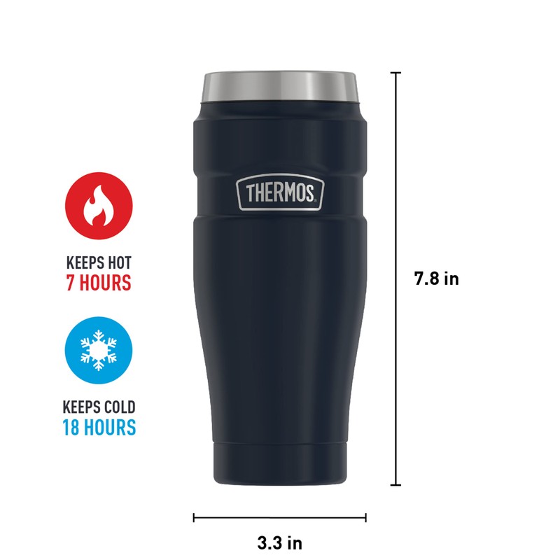 Thermos - Vaso de viaje de acero inoxidable, 16 onzas, color azul mate