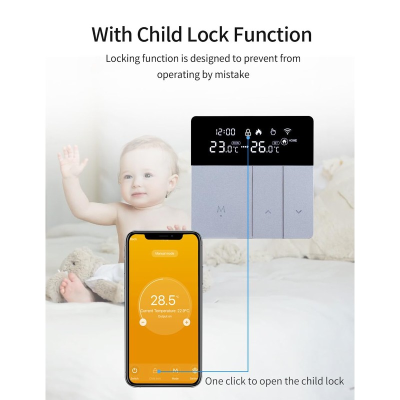 - Energy saving: Thanks to the intelligent control of the heating or air conditioning, the thermostat helps to save energy costs.