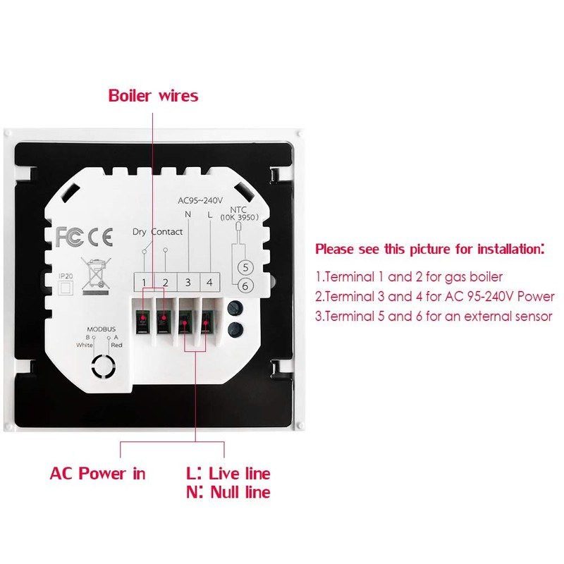 Thermostat, Smart Thermostat Intellight Temperature Controller 5A Water/Gas Boiler Thermostats for Home No Wi-Fi - White