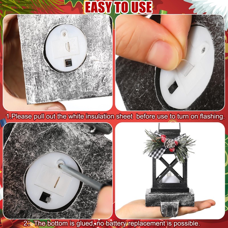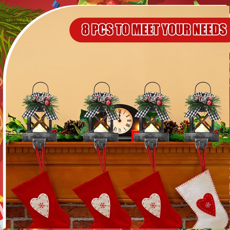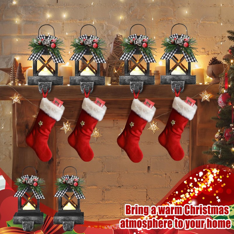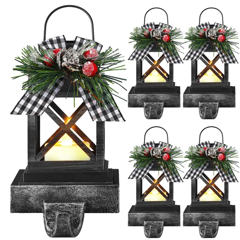 Therwen 4 Pcs Christmas Lantern Stocking Holders Retro Xmas Hooks for Stockings Decorative Mantle Hooks Light up Stocking Holders for Mantle Christmas Stockings Hangers (Classic,Black)