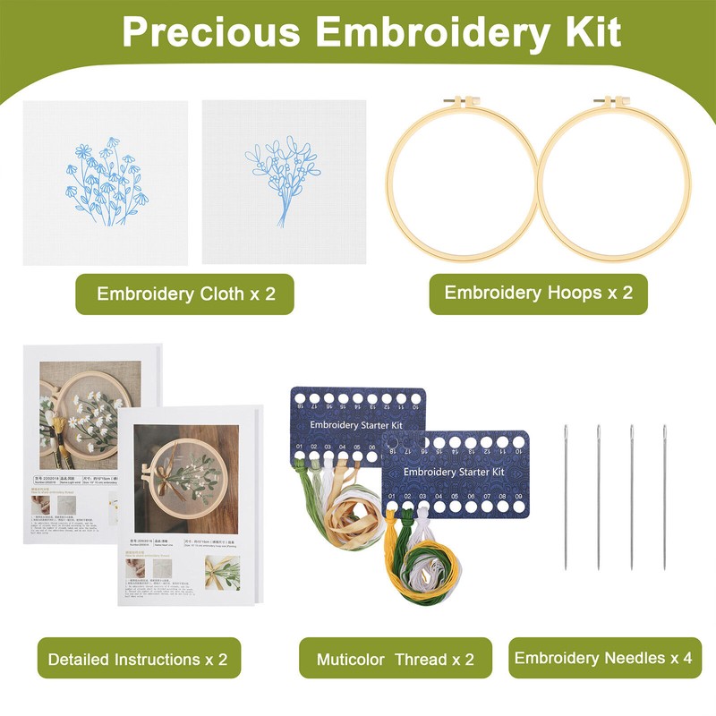 TheSiliconValley 2 Set Embroidery Starter Kit for Beginners Cross Stitch Stam...