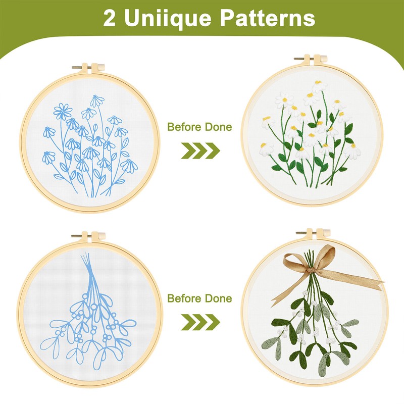 TheSiliconValley 2 Set Embroidery Starter Kit for Beginners Cross Stitch Stamped DIY Decor Craft