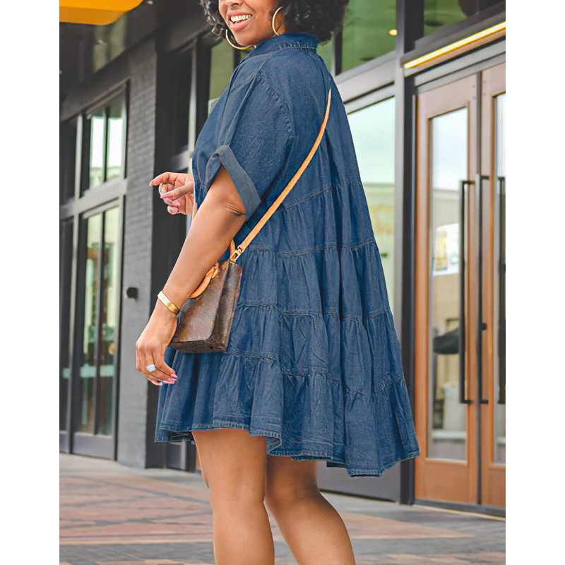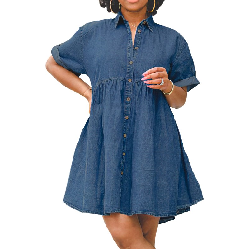 TheyLook Womens Denim Babydoll Dresses Button Down Tiered Jean Dress