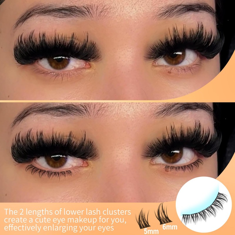 - Designed to look like a cluster of flames, these are the bottom eyelash clusters we've put together for you! These bottom lash clusters are suitable for your delicate eye makeup, and it can create a cute look like doll's eyes. 18pcs each of 5mm and 6mm, let this lower lash extensions help you make your eye makeup become complete and charming!