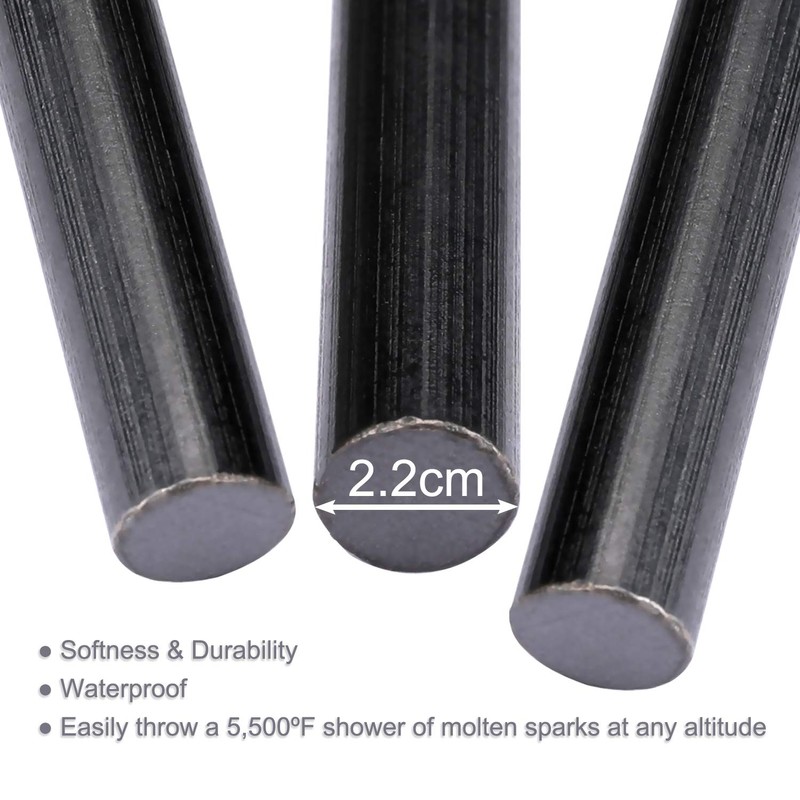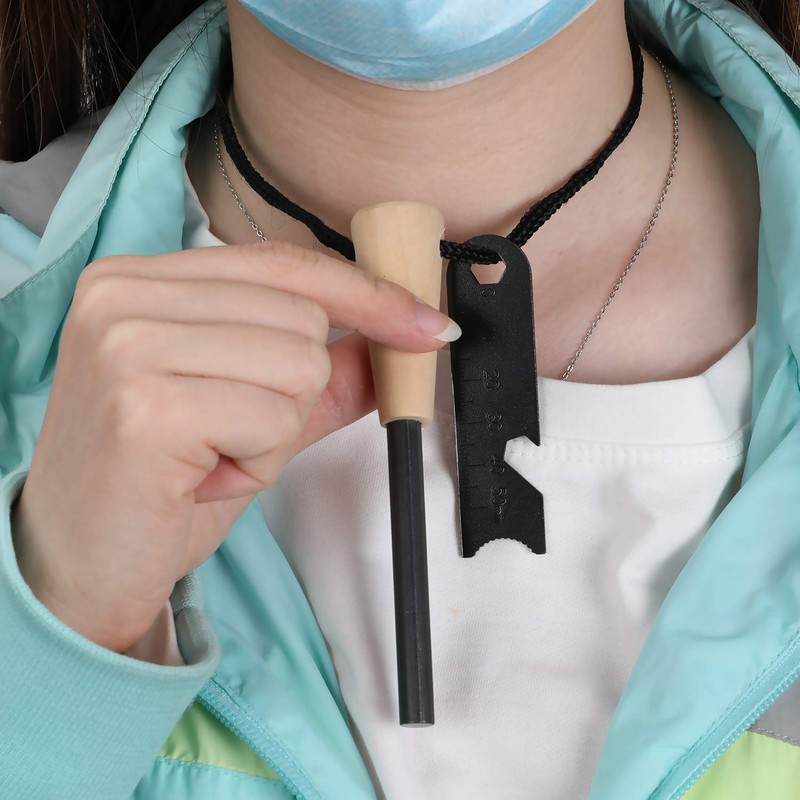 • *All the tools for your survival,each ferro rod boasts a sturdy wooden handle which has 40cm/1.31inch of heavy-duty paracord braided through it. Attached to the paracord is a multifunctional survival tool made of hardened steel. It also measures, opens bottles, turns hex nuts and helps you map-out your return to civilization. With a hard-wearing black powder coating, it endures the rigors of the outdoors without rusting or corroding.