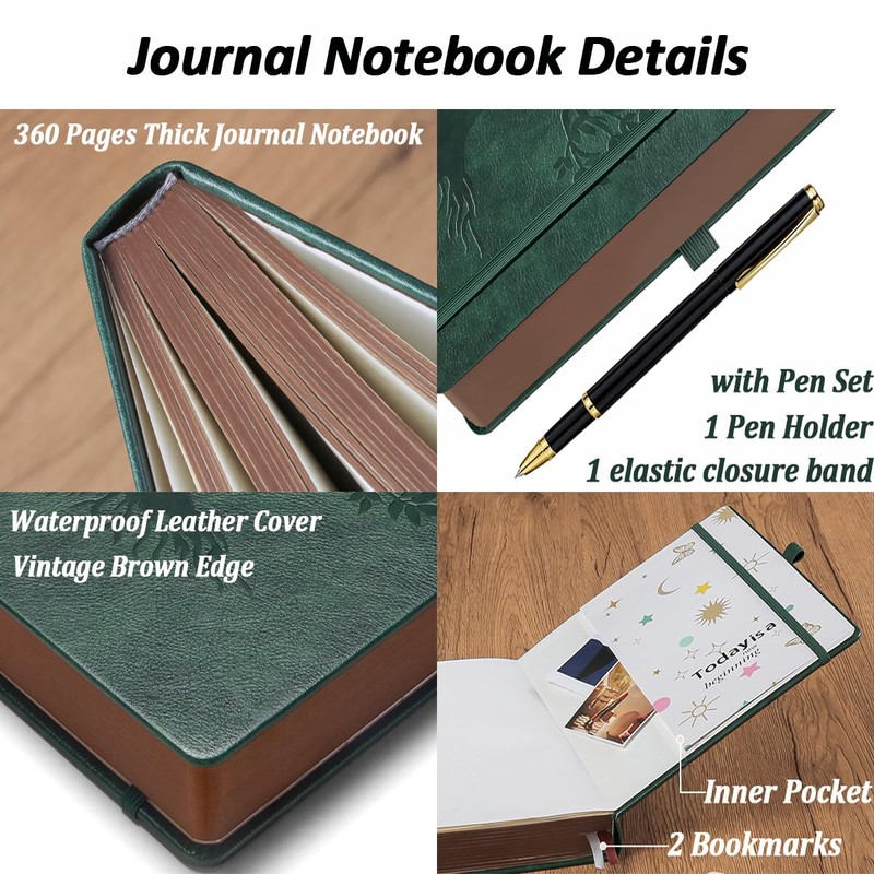 - Convenient Features and Pen Set: This journal notebook is designed with your convenience in mind. It comes with a pen set, providing you with all the tools you need to bring your words to life. Additionally, the two bookmarks and inner pocket offer practicality, allowing you to easily mark important pages and store small notes or keepsakes.