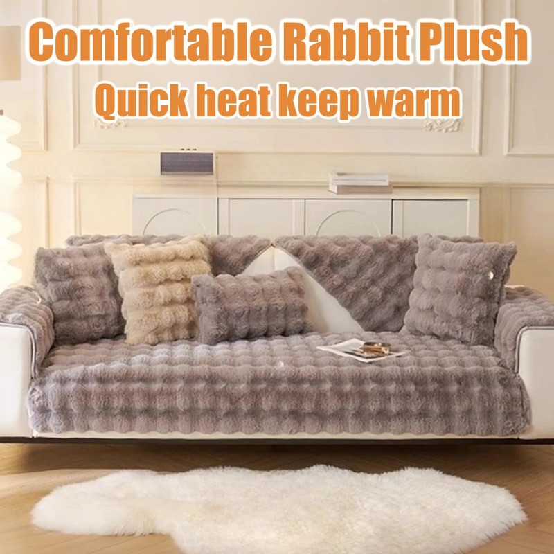 Thick Rabbit Plush Sofa Covers 3/2/1/4 Seater, Non-Slip Sofa Slipcovers For Corner L Shape, Funny Fuzzy Sofa Cover, Warm Velvet Sofa Cushion Covers, Washable Furniture Protector,Grey,70x120cm