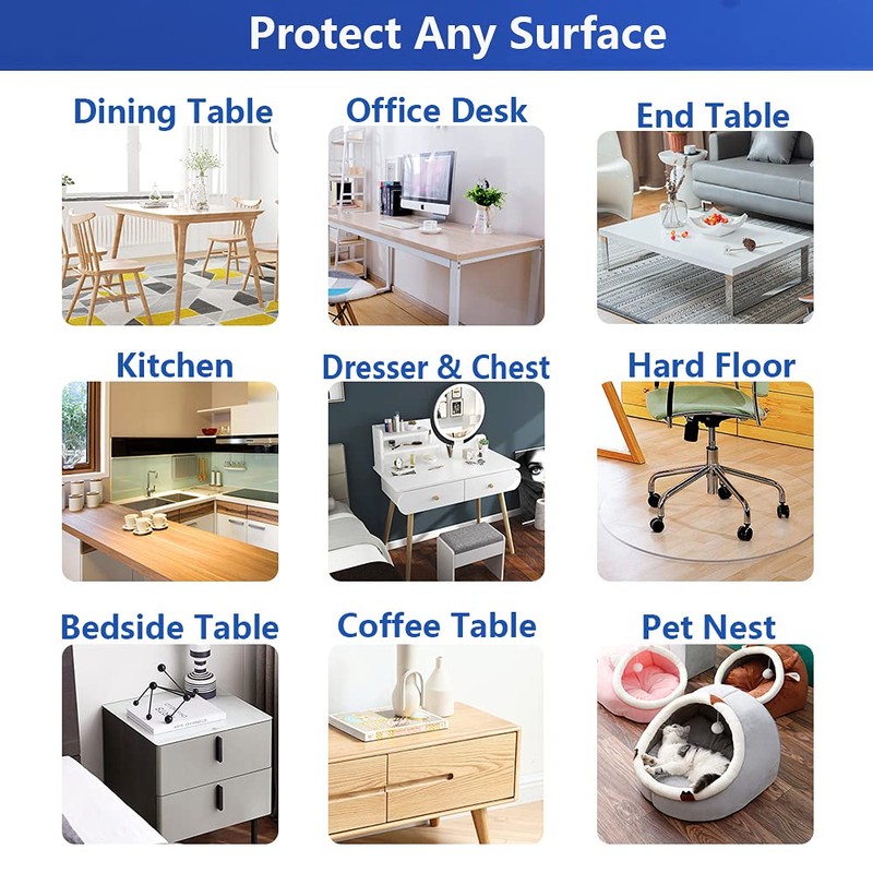 This table protector can be widely used to many surfaces .such as: kitchen countertop, dining room table,office desk,coffee & end table, dresser, night stand, TV bench,sofa table etc.