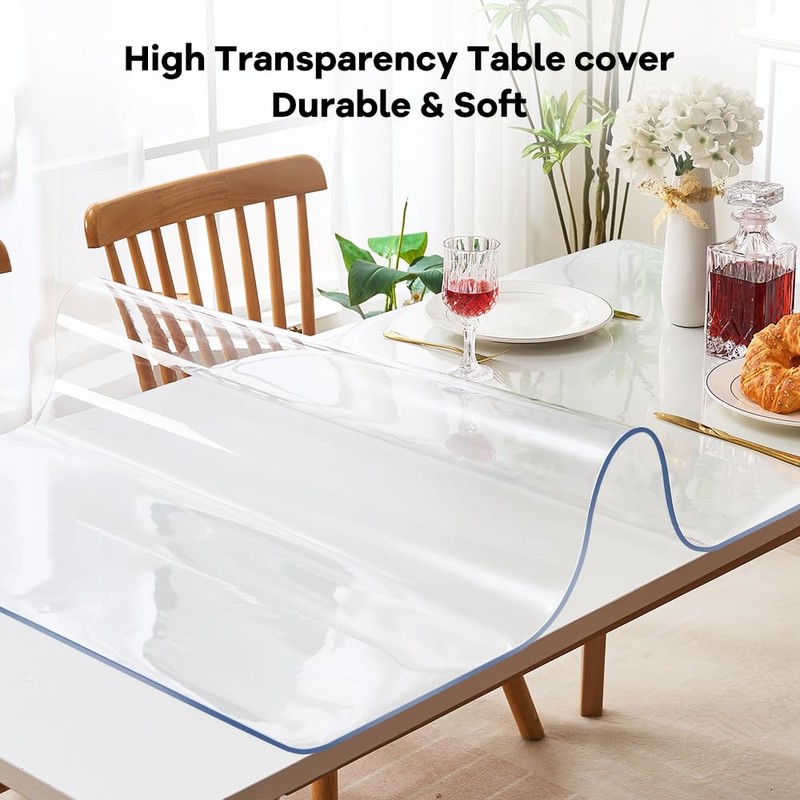 - 3. CUT TO FIT - Our clear table cover is perfect for your kitchen, dining room table, furniture desktop, tablecloth, coffee table, office desk, writing desktops etc. They come with many different sizes and are able to cut to size. A sharp scissors, a pencil and a ruler is needed to make a perfect cut. Once you have these tools, you can customize your own rectangle tablecloth, square tablecloth or contact us for a custom cut size.