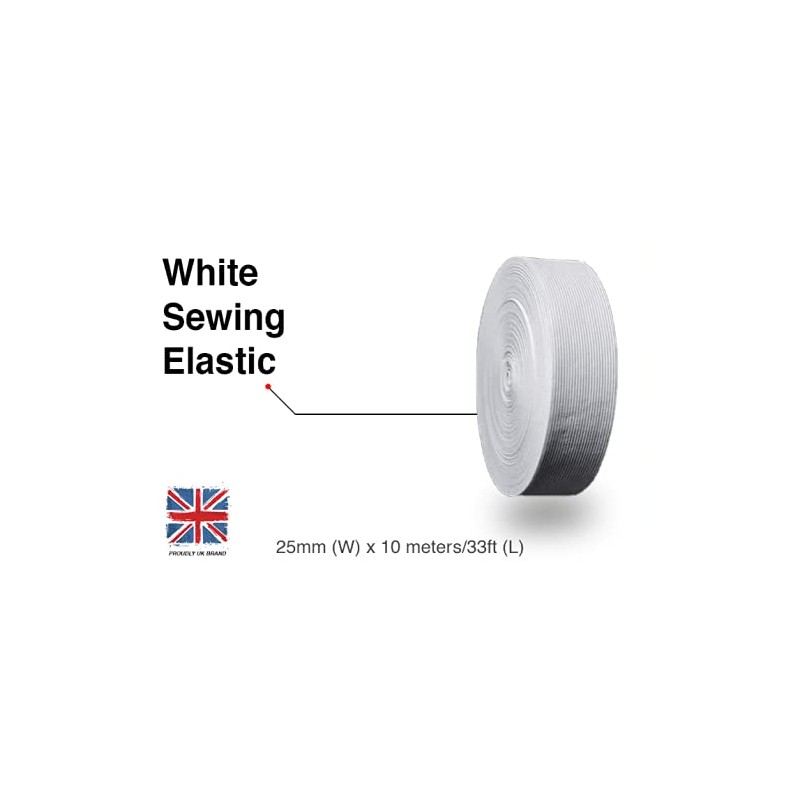 Thick White Elastic Bands for Sewing DENSCO Waistband 25mm 10 Meters 1 inch Wide Roll of Elastic, Dressmaking, Headbands, Trouser, Wig Band and DIY Craft