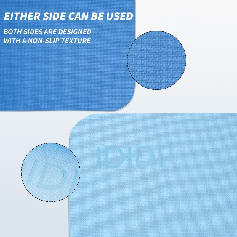 - HIGH QUALITY MATERIA: iDiDi yoga mat uses SGS certified POE material.Non-toxic, odorless, environmentally friendly and recyclable.The thickness can be selected as 1/3 inch, and not only durability but also soundproofing is excellent.High density materials can reduce shock and strain during exercise.