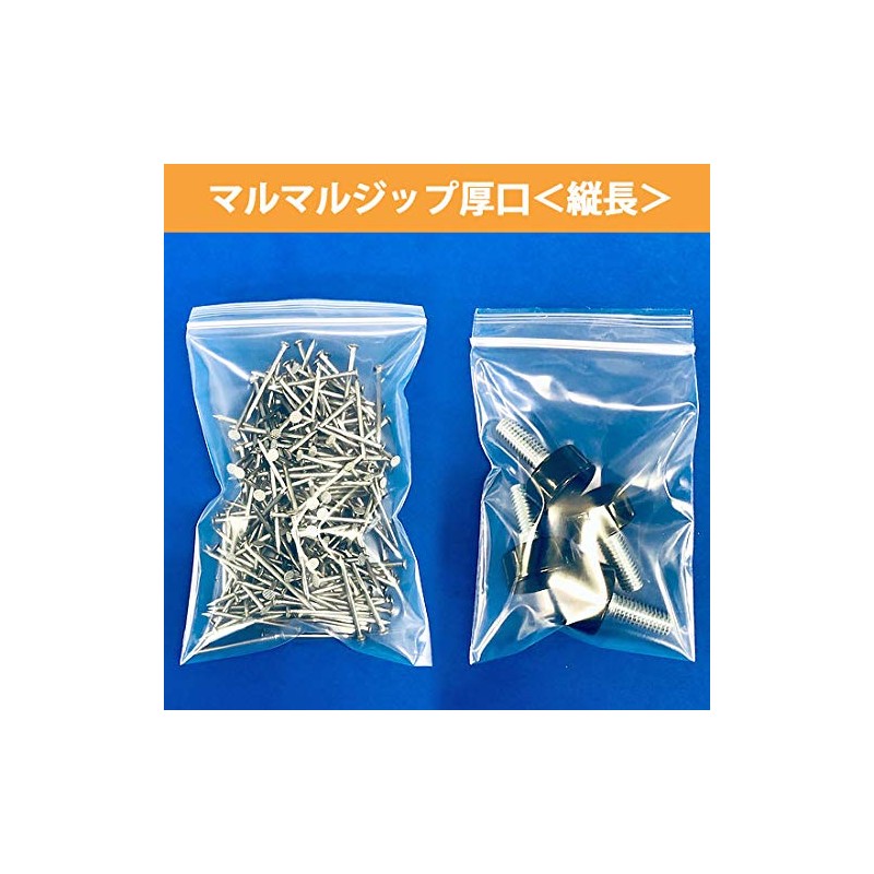 - The popular polyethylene bag with zipper "Marumaru Zip thick" is a classic popular vertical type with a thickness of 0.03 inch (0.08 mm). A convenient thick zipper bag for storing sharp corners, from freezing to defrosting hot water, to storing soil, powder, and other items in the middle of specifications, to store items in sealed places, for storing warranty cards, and wet towels