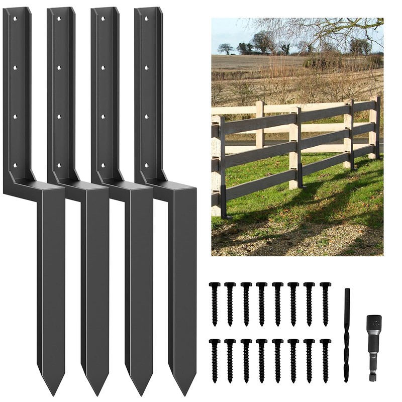 - 【Versatile Application】The metal fence post repair kit equipped with sharp tips for easy grounding without the need for extensive digging. Installation accessoris will come with the package we sent: M6 screws, 3/8" electric wrench sleeve and 3/16“ drill bit. You can quickly fix and reinforce your wooden fence, decks, railings, or flagpoles with them. Our fence post anchor acts as a perfect stabilizer for your structures.