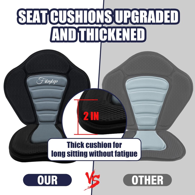 - 【Ergonomic Design with Tall Backrest】The deluxe kayak seat boasts an 18'' tall backrest, perfectly fitting your body and providing maximum back support, making a long day of kayaking comfortable and without any back pain concerns.