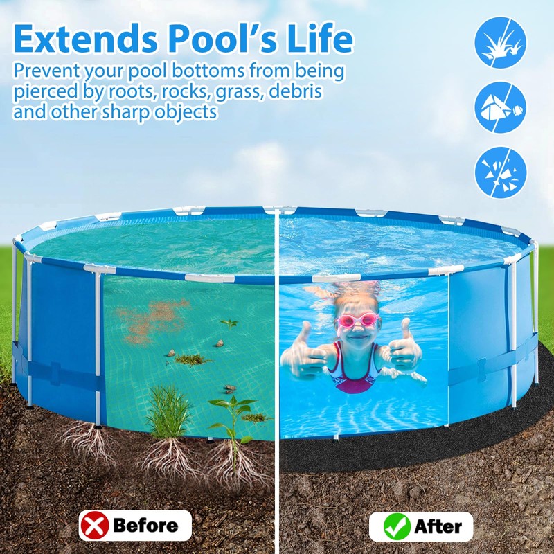 - Easy to Install: The pool ground pad is suitable for various surfaces - lawns, gravel, wooden floors and more. Pre-cut design, can be directly placed on gravel floor grass without fine sand