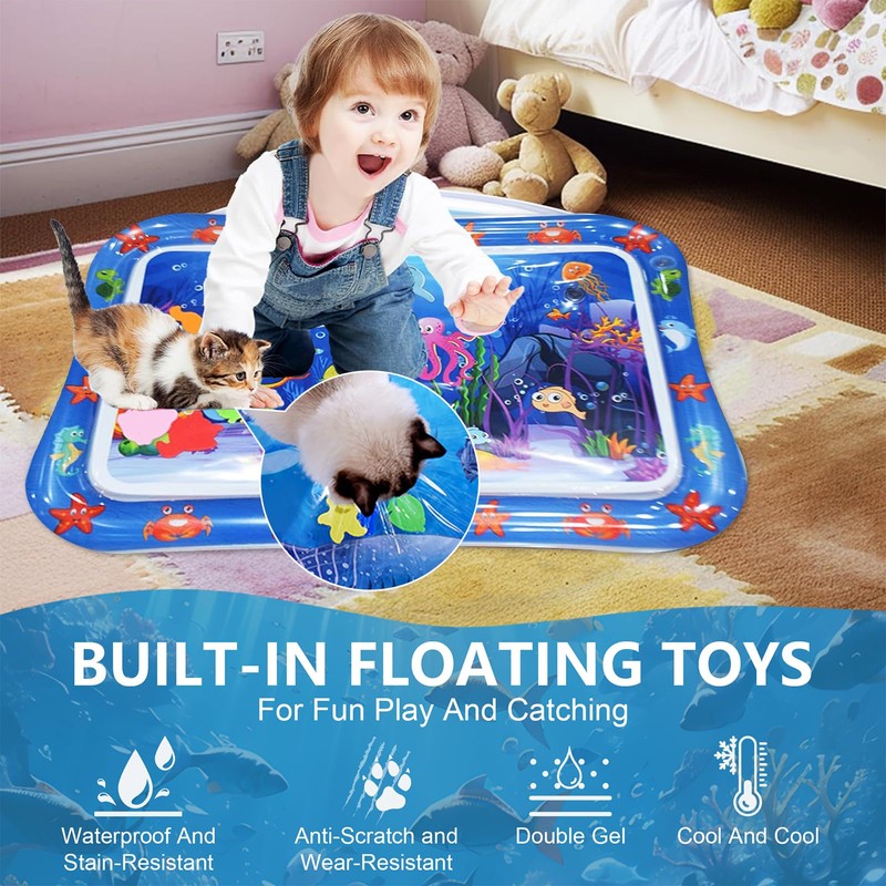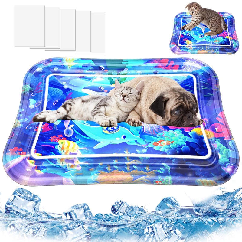 Thickened Sensory Water Mat for Cats & Dogs,Summer Cooling Playmat with Float...