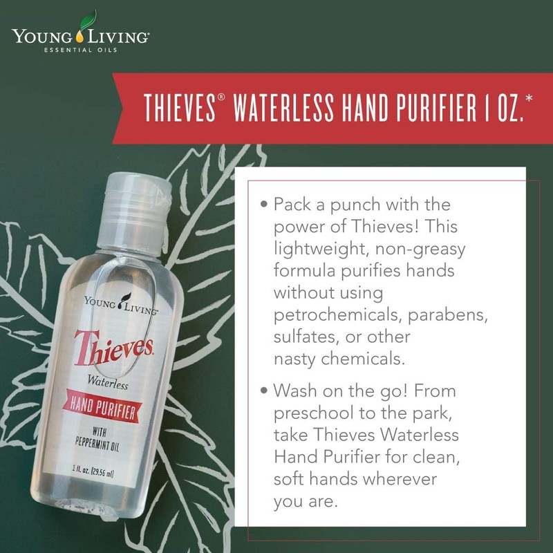 Young Living Thieves Waterless Hand Purifier with Peppermint Oil | 1 oz | Convenient, Refreshing, and Gentle Cleanser for Soft Hands | 3 Pack