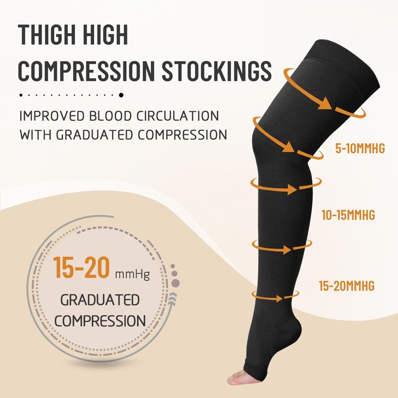 Thigh High 15-20 mmHg Compression Stocking, Open Toe Compression Socks for wo...