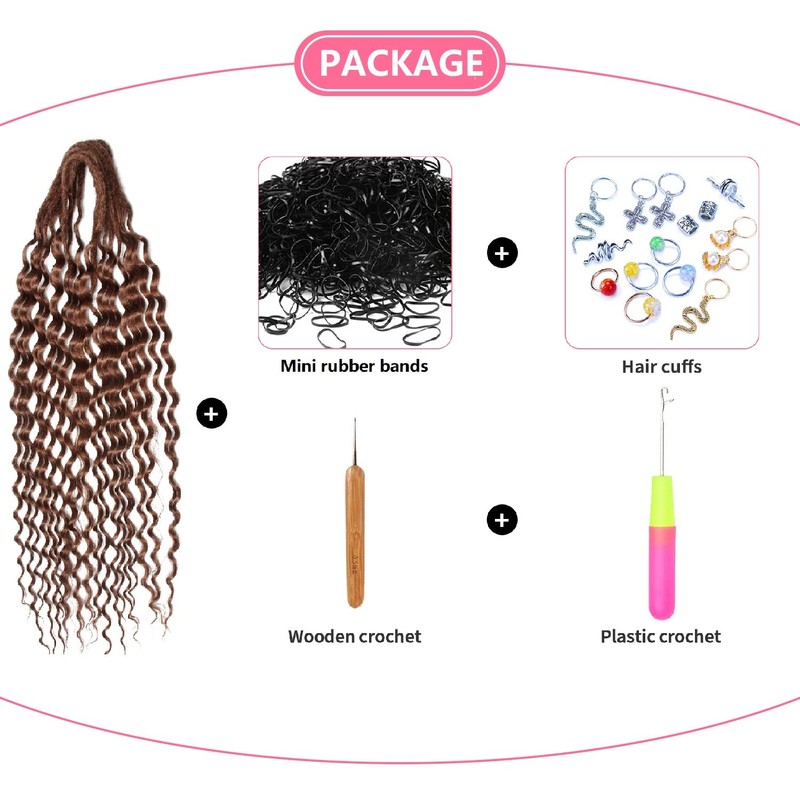 Packing list: 15 strands of curly dreadlocks+1 crochet needle+1 crochet hook+1 pack of haircuffs+mini rubber bands
