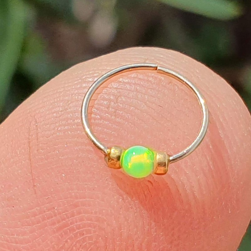 Thin 14k Gold Filled Tiny Nose Ring Hoop - 2 mm Green Opal piercing Nose Hoop - 24 gauge very Thin Nose Hoop Tiny Piercings Nose Rings hoop - Opal nose rings