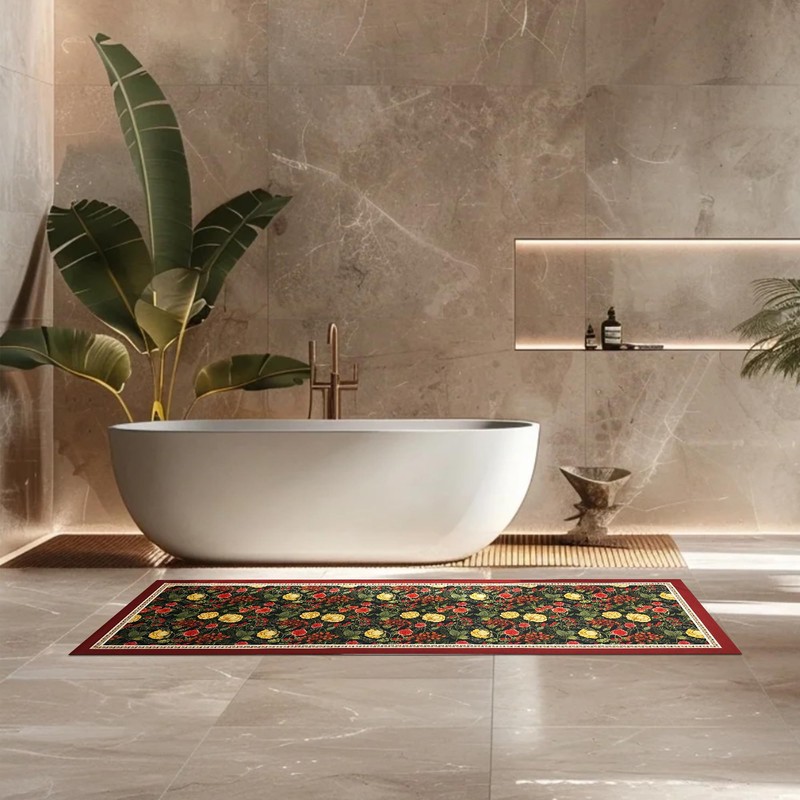 - Stylish &Versatile Usage: With its Victorian retro design, the thin bathroom mat fits can be used in different settings. Whether used in a bathroom, kitchen, laundry room, vanity, sink-side, hallway , this diatom mud carpet adds both style and functionality to any space.