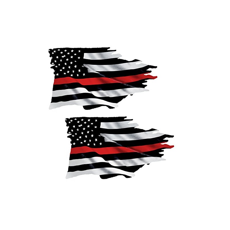 Thin RED Line Tattered Flag Sticker 2 Pack