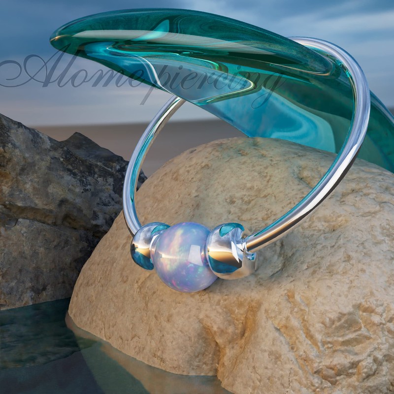 ♥ Comfortable, delicate Nose Ring - Light Blue Opal Beaded Nose hoop - Silver Sterling Nose Ring.