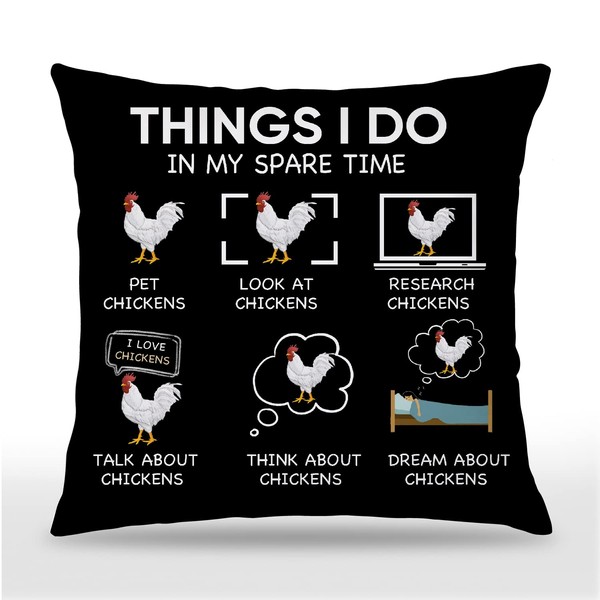 Things I Do in My Spare Time Funny Chicken 18 x 18 Inches Throw Pillow Covers,Bedroom Living Room Girl Room Home Decor,Chicken Farm Girl Ladies Gifts,Chicken Lovers Mom Gifts