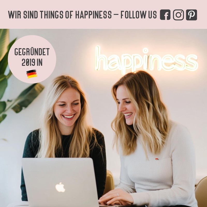 - 💎 MADE WITH HAPPINESS » Things of Happiness steht für Produkte, die Freude bringen. Wir sind ein kreatives Team aus Berlin und legen großen Wert auf Qualität und Design. Solltest Du nicht zufrieden sein, melde Dich bei uns – wir finden eine Lösung!