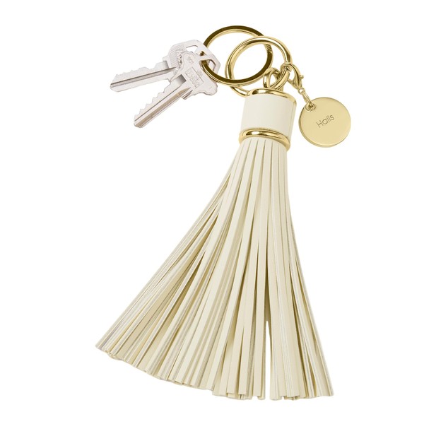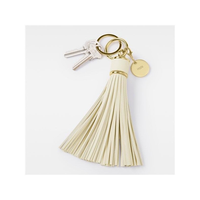 THINGS REMEMBERED Engraved Cream Leather Tassel Keychain & Bag Tag (Free Customization)