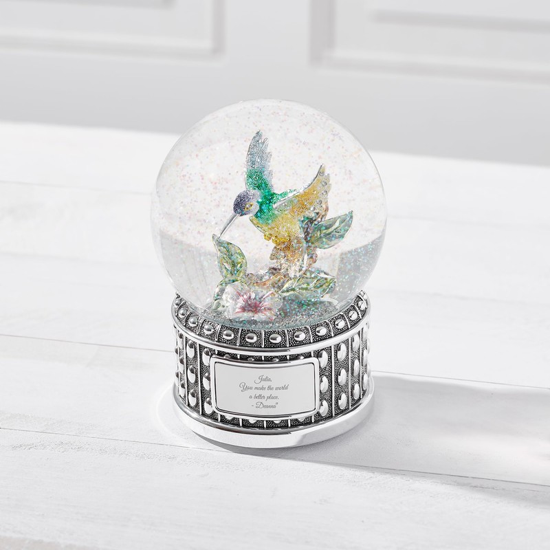 THINGS REMEMBERED Jeweled Hummingbird Musical Snow Globe (Free Customization), Plays Flower Song Music