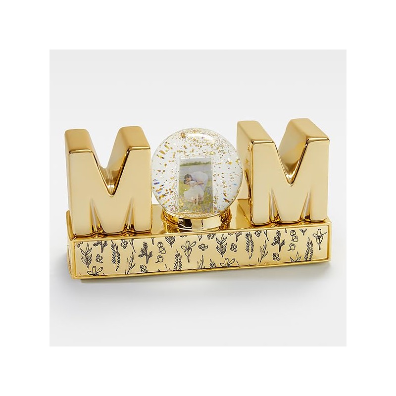- KEY DETAILS – The ornate gold tone snowglobe features a classic globe on a gold leaf-accented base, bordered by two Ms to spell out the word MOM. With a wind at the back, the snow globe plays “Spring Song.”