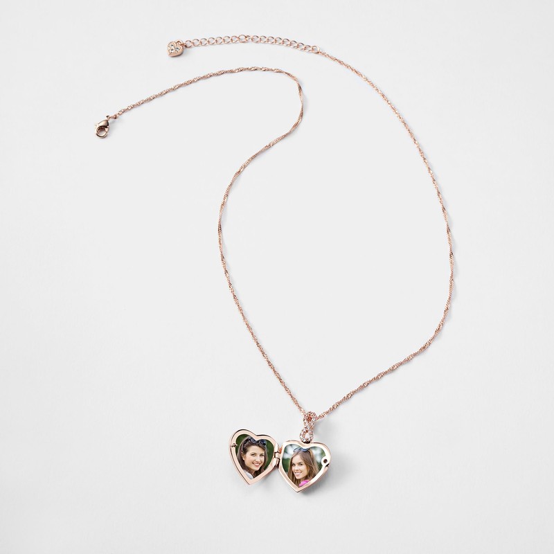 - KEY DETAILS – The heart-shaped locket features a beautiful and modern rose gold-tone finish, which is accented with an infinity bail detailed with cubic zirconia stones. Locket measures 0.75"H x 0.75"W when closed. Clean with a soft cloth.