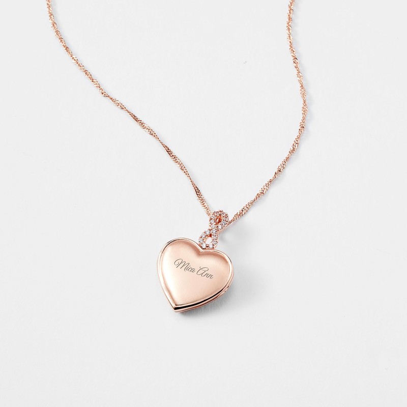THINGS REMEMBERED Rose Gold Tone Infinity Bail Heart Locket (Free Customization)