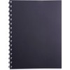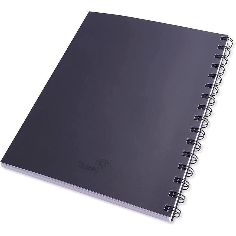 - The sleek black designed notebook looks great in any business meeting or classroom. The spiral wirebound binding ensures the notebook opens flat 180° for easy note taking, drawing, and layout work.