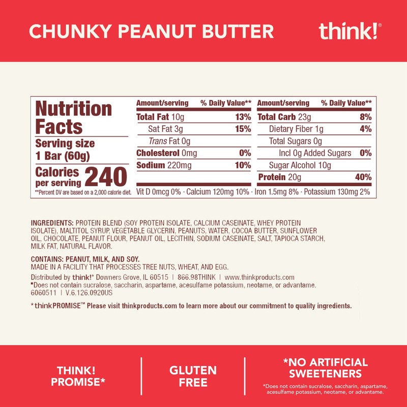 Each Think! bar blends delicious, crave-worthy flavors with the hunger- fighting protein you need to accomplish your goals. So, whether you are on the go, need a snack halfway up the trail, or crave a pick-me-up before your workout, grab a Think! Bar.