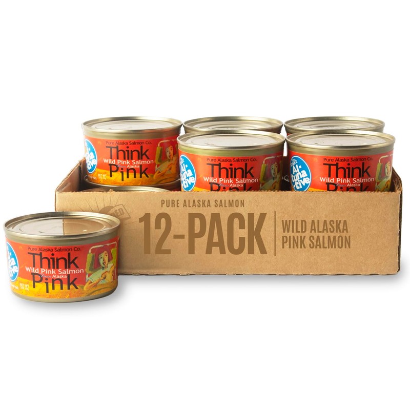 Think Pink Wild Alaska Pink Salmon, The Original Smart Al-TUNA-tive! Wild-Caught, Gluten Free, Non-GMO, Kosher, Sustainable, Product of USA, 12 pack-7.5 oz cans