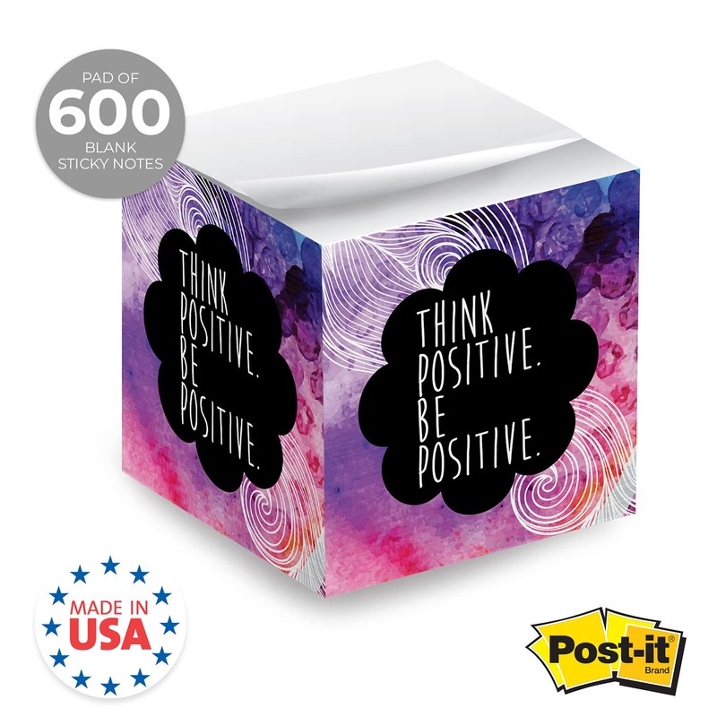- Modern Design: Abstract watercolor design with encouraging message "Think Positive Be Positive" on all four sides. Notes are blank white with matte finish for easy and legible writing.