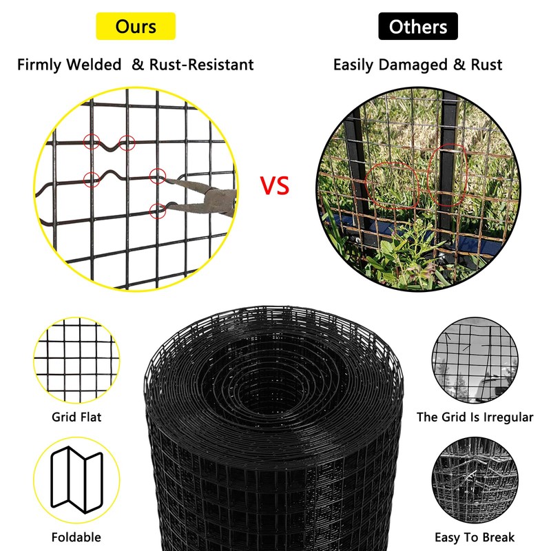 - 【Excellent Performance and Durability】: This high-quality black vinyl-coated hardware cloth performs excellent performance in both indoor and outdoor environments, suitable for all climates with its durability and corrosion resistance condition.