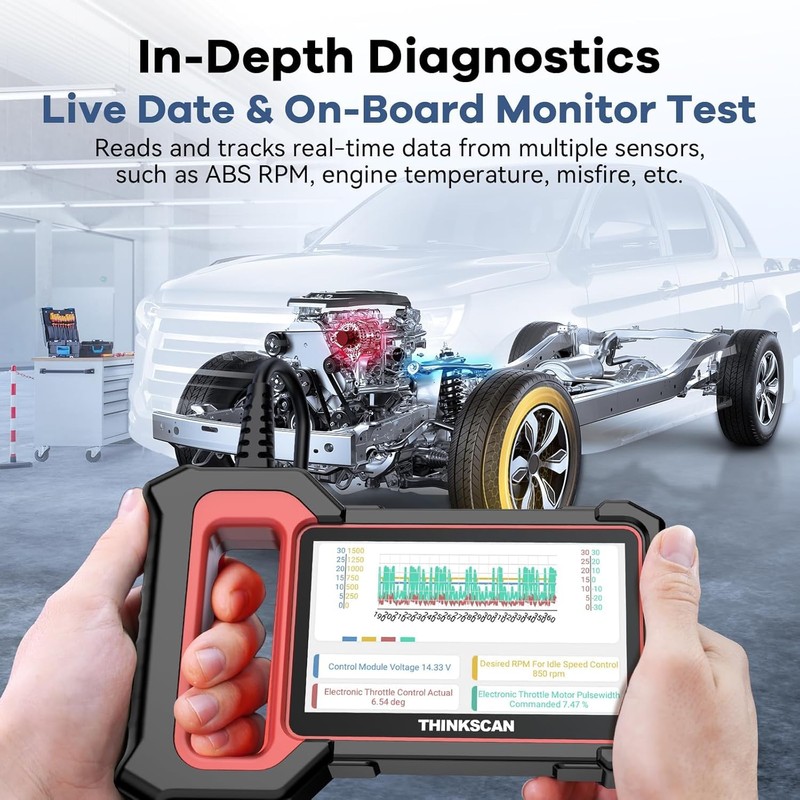 • [Full OBD2 Functions] Thinkscan Plus S5 car scanner can support all 10 OBD2 test modes. Read Codes, Erase Codes, MIL Fault Indicator Light, Live Data, EVAP System Test, On-Board Monitor Test, View Freeze Frame, O2 Sensor Test, Vehicle Info, I/M Readiness, DTC Code Look-up, perform O2 sensor tests and carbon canister tests to ensure your vehicle is ready for all emission services.