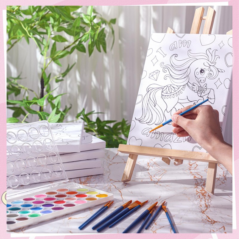 - Canvas Painting Kit: you will receive 6 pieces of unicorn pre-drawn canvas in different unicorn patterns, with back stapled to a 5/8inch wide wooden frame; Allows you to draw with your preferences or our picture colors and share with your friends