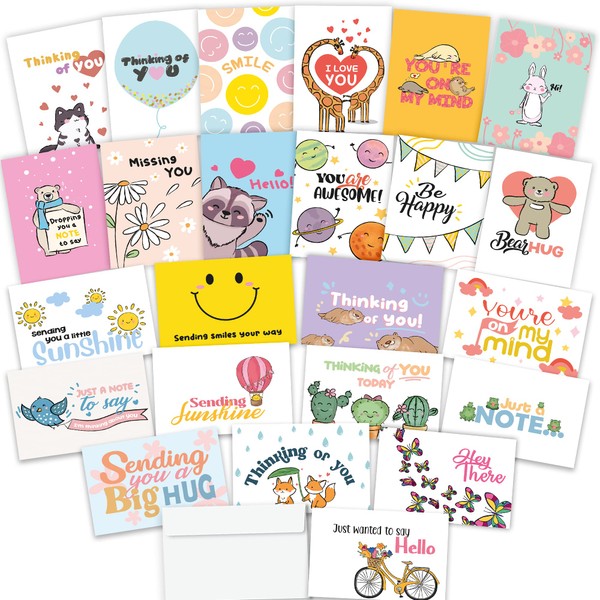 Thinking of You Cards with Envelopes - 24 Gender Neutral Thinking of You Cards with 24 Unique Designs - Unfolded 8.3 x 5.8 Folded 4.1 x 5.8 Greeting Cards Thinking of You (Variety)